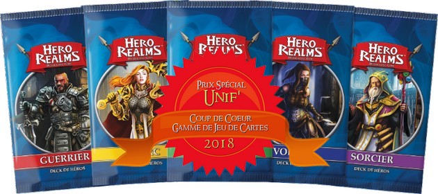 Faisant suite, à la gamme Star Realms, et empruntant les mêmes mécaniques, Hero Realms est arrivé, sans faire de bruit, dans le monde du jeu. Sans tambours, ni trompettes, ce jeu encore jeune, a pourtant bien des atouts à faire valoir. Les deux gammes, très semblables remportent donc le Prix Spécial Unif’ de la meilleure gamme de jeu de cartes compétitif.