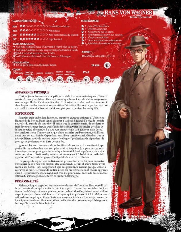 Bien qu’il soit possible de créer ses propres personnages, il est fortement conseillé d’utiliser les pré-tirés qui ont des backgrounds croisés du plus bel effet.