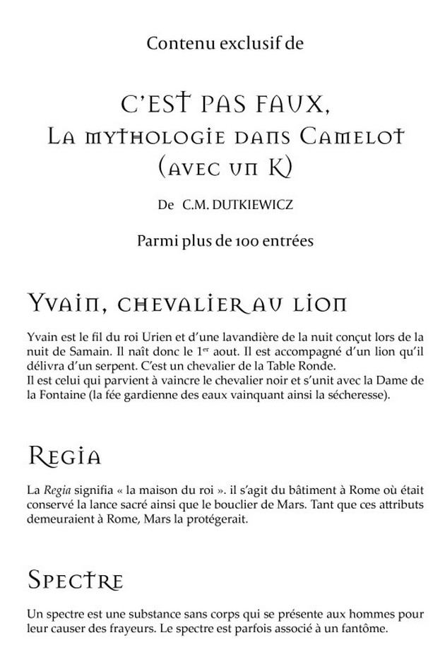 La mythologie dans Camelot (avec un K)