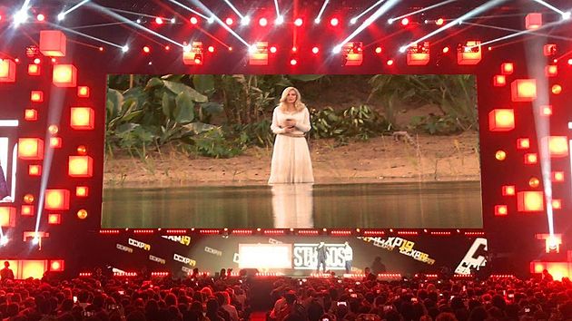 La séquence commence avec une vidéo avec les Eternals assemblés, tous dans leur armure mythologique. S’en suit une série de courts extraits avec des Eternals à différents endroits, mettant en valeur la diversité du film et le casting international. Cela a été suivi d’un plan rapproché avec Thena (Angelina Jolie) souriante, blonde et vêtue de son costume blanc, suivi d’Ajak (Salma Hayek) en action puis la vision d’une armée monstrueuse (Les déviants ?).