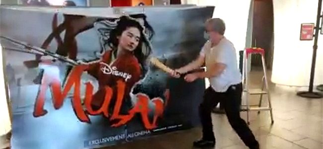 Gérard Lemoine, propriétaire d’un cinéma indépendant Cinepal à Palaiseau, a appris plus tôt cette semaine que Mulan sera sur Disney+ (pour le doux prix de 29,99$), il pète les plombs et explose une affiche promotionnelle du film ! Lemoine a déclaré : "Ma vidéo dépasse un peu mes attentes", en parlant du succès de son tweet ravageur de jeudi dernier.