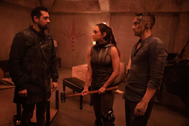 – Dans l’explosion du bunker, Emori (Luisa d’Oliveira) est gravement blessée. Le seul moyen de la sauver, c’est de retourner sur Sanctum en utilisant la pierre cachée sous le grand salon du bunker. À vos masses, prêts, creusez !