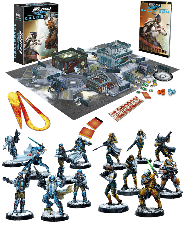 Le Battle Pack Opération Kaldtrøm est la boîte de départ idéale. Développé pour deux joueurs, elle contient tout ce dont vous avez besoin pour commencer à jouer à Infinity CodeOne (figurines, régles, dés, gabarits, décors...)"