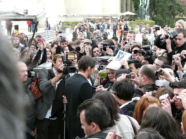 Puis tranquillement, sans crier gare, le voici qu’à la stupéfaction générale, il se dirige rapidement vers la petite centaine de fans qui attendait sagement de l’autre coté de la haie. Chaos, bousculade, panique des photographes et autres caméraman télé qui n’avaient pas prévus le mouvement de l’acteur. Hugh Jackman a alors tranquillement pris le temps de signer des autographes et s’est fait prendre en photo avec les fans avant de repartir.