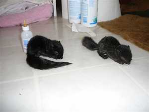 Vous imaginez la tête de Bev e soir en rentrant : ce n’est pas un écureuil, ni deux, mais bien trois que nous allons maintenant devoir élever ! Survivront-ils ? Là est la question. Nous passons notre week-end à nous occuper d’eux, à les laver, à supprimer les dernières vermines, à les rassurer, les cajoler… Mais Jack maigrit à vue d’œil et jumeau numéro 1 refuse toujours de se nourrir. Pour couronner le tout, le lait pour chiot leur a provoqué une diarrhée. C’est inquiétant.