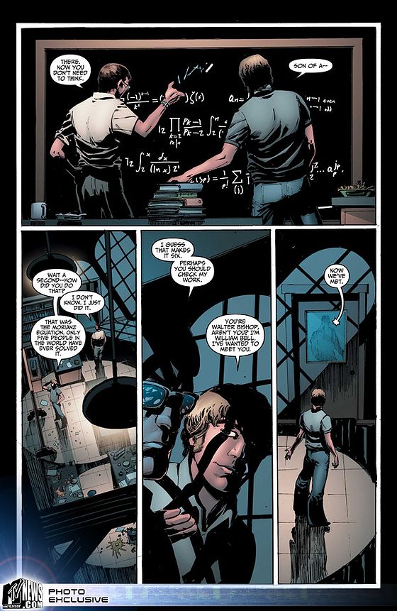 Wildstorm, division de DCcomics propose une BD en 6 volumes depuis le début de la diffusion américaine de la série. Les histoires, qui sont écrites par Mike Johnson et mises en images par Tom Mandrake, racontent les expériences de William Bell et Walter Bishop et se plongent dans le passé des personnages principaux. Extraits :