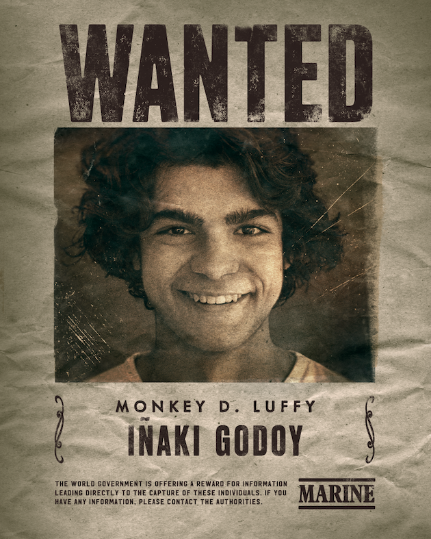 Sont donc épinglés sur tous les murs possible et imaginables, 5 affiches personnage sous la forme d’avis de recherche tellement One Piece avec en grand la photo et écrits le nom de l’acteur choisit et le personnage qu’il incarnera : Iñaki Godoy (Qui a tué Sara ?, ci-dessus) a reçu la très lourde charge de donner ses traits à Monkey D. Luffy en la personne, Mackenyu (Kenshin - L’Achèvement, ci-dessous) fera quant à lui l’interprétation de Roronoa Zoro, tandis que Emily Rudd (Fear Street, plus bas) a obtenu le rôle de Nami. Enfin, Jacob Romero Gibson (All Rise) et Taz Skylar (Boiling Point) seront respectivement Usopp et Sanji.