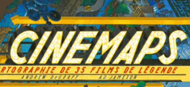 L’exposition Cinemaps est présentée à la French Paper Gallery (51 rue Volta, Paris 3), jusqu’au 28 novembre 2021. Les œuvres de l’artiste Andrew DeGraff y sont exposées, permettant de se plonger dans le travail magnifique qu’il a fait pour cartographier certains films cultes.
