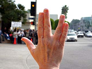 C’est ce vendredi qu’ont eu lieu des manifestations Star Trek un peu partout dans le monde. D’après les organisateurs 400 personnes ont brandi les pancartes devant les studios Paramount à Los Angeles (un peu plus de 100 selon les autorités). Plusieurs Stars de Star Trek Enterprise sont allées rendre une petite visite aux manifestants ainsi que des membres de la production. |