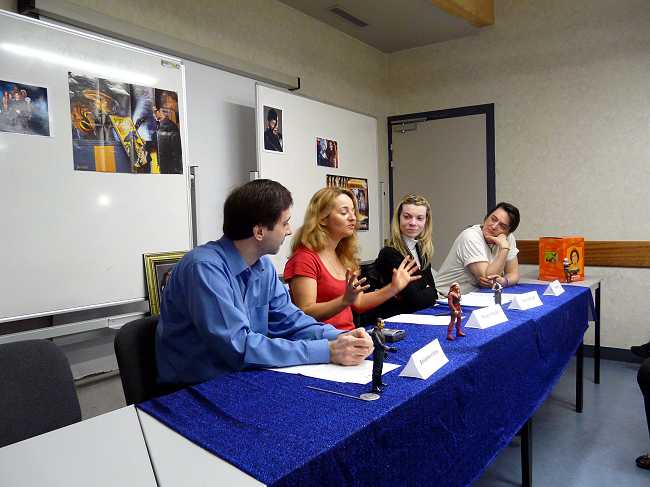 Nous avons eu le plaisir d’animer le panel Farscape du Salon des séries TV et cinéma qui s’est tenu le 30 mars 2008. Pour parler de Farscape était présent Elodie Dufour (Unification), Dominique Bleuet (Unification) et François Justamand (La gazette du doublage / Serialement votre)). En invité suprise, les spectateurs ont eu le plaisir d’accueillir Barbara Tissier la voix de Chiana dans Farscape. Barbara est aussi la voix de la Princesse Fiona dans Shrek. Elle travaille en tant que directrice du doublage de nombreux films et dessins animées.