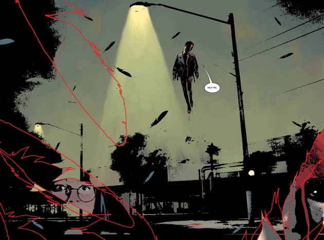 Si le volume est plus scénarisé (il est plus long que son prédécesseur), il est tout autant graphique, avec de nombreuses pleine-page et des inserts jusque dans les plumes des corbeaux que l’on retrouve partout, qui servent souvent de découpage.
