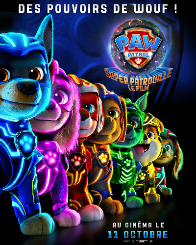 La Pat’ Patrouille : La Super Patrouille Le Film de Cal Brunker (Sortie le 11/10) : Lorsqu’une météorite magique s’écrase sur Aventureville, elle donne à la Pat’Patrouille des pouvoirs, les transformant en Super Patrouille ! Pour Stella, la plus petite membre de l’équipe, avoir des pouvoirs est un rêve qui devient réalité. Mais les choses dégénèrent lorsque Monsieur Hellinger, l’ennemi juré de nos amis, s’évade de prison et s’associe à un savant fou afin de voler et de s’accaparer ces nouveaux pouvoirs. Le destin d’Aventureville est désormais en jeu, la Super Patrouille doit arrêter les super-vilains avant qu’il ne soit trop tard. Stella va découvrir que même le plus petit des chiens peut faire la plus grande des différences.