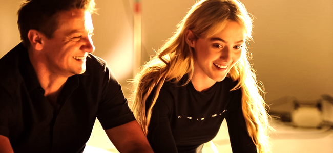 Kathryn Newton (Cassie Lang) ao lado de Jeremy Renner, fazendo teste para o papel de Kate Bishop em Hawkeye.