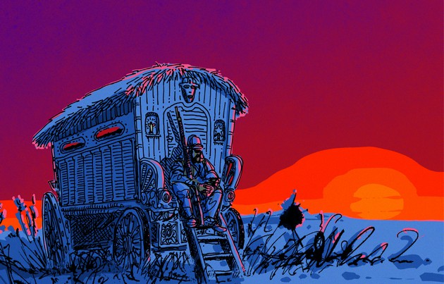 "Le groupe de héros progresse dans les profondeurs d’une vaste steppe mythique remplie de détritus du temps et de l’espace, sous les sons saccadés de riffs à la Black Sabbath.