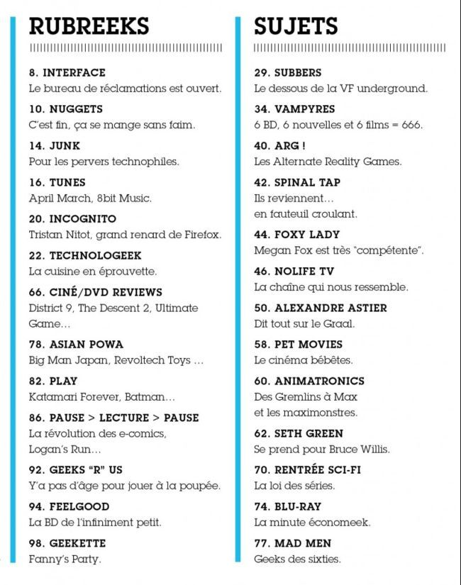 Presse : Le sommaire de Geek Magazine n°3