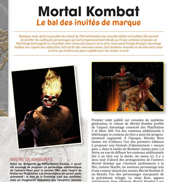 Enfin, on nous parlera des fameuses Fatalités, à travers un best of des plus sanglants, ainsi que des nombreux combattants invités, venus du monde du cinéma ou de la pop-culture au sens large.