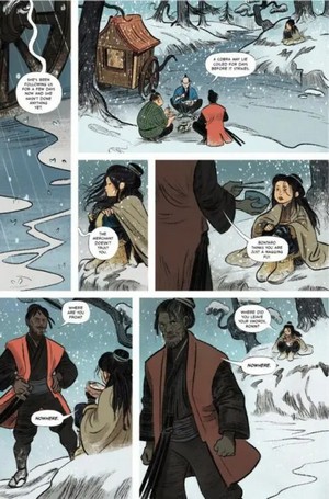 C’est dans cette optique que l’histoire se concentre sur un samouraï noir (de plus vieux et se produisant comme une bête de foire pour gagner l’argent qui le ramènera sur ses terres) et une petite fille "tueuse de loup", impétueuse et volontaire à qui il a la lourde tâche d’apprendre bien des leçons de vie.