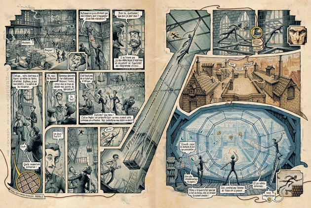 Dans des cases baroques, bourrées de détails, les indices s’entassent, certains pour être utilisés de suite, combinés avec d’autres, ou mis de côté pour plus tard. Le dessin est splendide, à la fois évocateur et précis, avec une tonne de petits indices visuels, ou de présentations originales.
