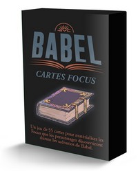 L’écran de Babel contient côté recto une représentation de la Bibliothèque, où se trouvent les accès vers les mondes de livres. Côté verso, il contient un résumé des règles et les tables utiles au meneur de jeu. Il est accompagné d’un livret contenant de nouveaux Cercles, qui peuvent être des adversaires, des alliés, ou des inspirations pour les Cercles des PJ.