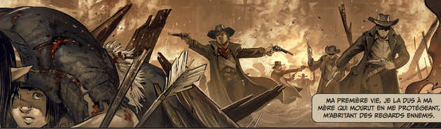 L’assassin, le ronin et la catin conclu cette première saison de West Fantasy et présente en une double page, et pour notre plus grand plaisir, le tome 6, qui ne saurait tarder. Comme je l’indiquais dans ma critique du premier tome, il s’agit ici clairement du meilleur des deux mondes pour West Fantasy. L’univers créé par J.L. Istin et son compère Bertrand Benoit est un savant mélange de Western, et de fantasy, peuplé des races que l’on connait du monde d’Aquilon. L’intégration des deux dans cette série est juste parfaite, on plonge dedans avec un énorme plaisir et beaucoup de délectation.