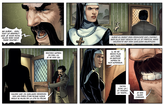 Le principe reste le même dans ce tome 5, nous avons droit à un découpage en chapitres, dont un sera uniquement textuel, nous suivons 3 personnages dont un vient du tome précédent, mais j’imagine que si vous êtes là c’est que vous êtes quelque peu familiarisé avec le principe. Là encore les thèmes sont très adultes et la série n’est pas à laisser entre toutes les mains, on jure pas mal, certains dialogues sont assez crus, on défouraille pas mal aussi, mais on viole aussi et on massacre gratuitement... C’est une BD adulte sans concession.