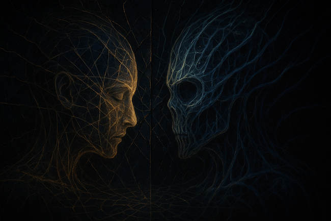Ce roman n’est pas seulement un thriller spatial, c’est une plongée dans la transformation ontologique de l’être humain. Le corps devient interface, outil, matériau à modeler, au point de franchir les frontières de l’horreur biologique. La fusion entre chair, danse et code dans le rituel des Vhlanis incarne le cœur noir du récit : comprendre l’autre implique ici de se mutiler, de perdre jusqu’à son visage. On y retrouve les grandes thématiques du transhumanisme dans leur versant le plus sombre : hybridation technologique, effacement de la subjectivité, et absorption de la volonté individuelle dans une logique collective inintelligible. Castro explore un devenir-posthumain où l’évolution n’est plus libératrice, mais sacrificielle, presque sadique. Le roman flirte alors avec la body horror, à la frontière de l’insoutenable.