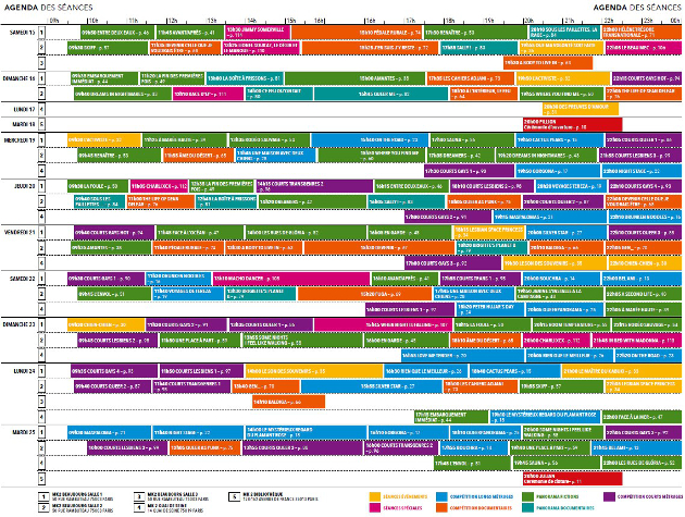 Vous pouvez voir ci-dessous le planning dense des œuvres projetées, et allez les découvrir plus en détail sur le site officiel ou en téléchargeant le très beau programme du festival.